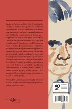 Escrito en París entre 1940 y 1946, Breviario de los vencidos es el último libro que Cioran escribió en lengua rumana. Tras una corta estancia en Alemania como becario y una fugaz experiencia como profesor de filosofía en un instituto de Brasov, que el propio autor no dudó en calificar de catastrófica , Cioran se instala definitivamente en la capital de Francia. A partir de entonces escribirá todos sus libros en francés. Imaginemos a este antiprofeta del siglo xx mientras pasea su soledad por las noches de París en uno de los momentos más terribles que atraviesa la ciudad, acosado por el insomnio y el tedio que suscita en él el pobre espectáculo de una civilización debilitada. En las primeras páginas de este libro, Cioran declara: Vivir: especializarse en el error. Burlarse de las verdades indubitadas, no hacer caso de lo absoluto, tomar a broma la muerte y transformar lo infinito en azar. El mero hecho de ser es tan grave que, comparado con él, Dios es pura bagatela . Con apenas treinta años, cuando empieza la redacción de este anticonvencional breviario , su autor ya es plenamente dueño de unas obsesiones que nunca dejarán de acompañarle: el esteticismo que hace del arte la única excusa para seguir en este mundo; el nihilismo que busca en el goce del instante el único absoluto o la nostalgia de un paraíso del que fuimos expulsados. Provocador, irónico y sarcástico como pocos autores, los aforismos de Emil Cioran son una lectura adictiva.